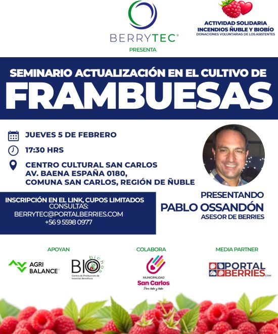 Berrytec es un equipo de agrónomos especializado en cultivos de berries, que ofrece asesorías técnicas y comerciales basadas en experiencia e innovación tecnológica. Sus programas buscan maximizar rendimientos, reducir costos y fomentar la sostenibilidad. Además, organizan actividades de transferencia tecnológica como congresos, seminarios y talleres para la industria de los berries.