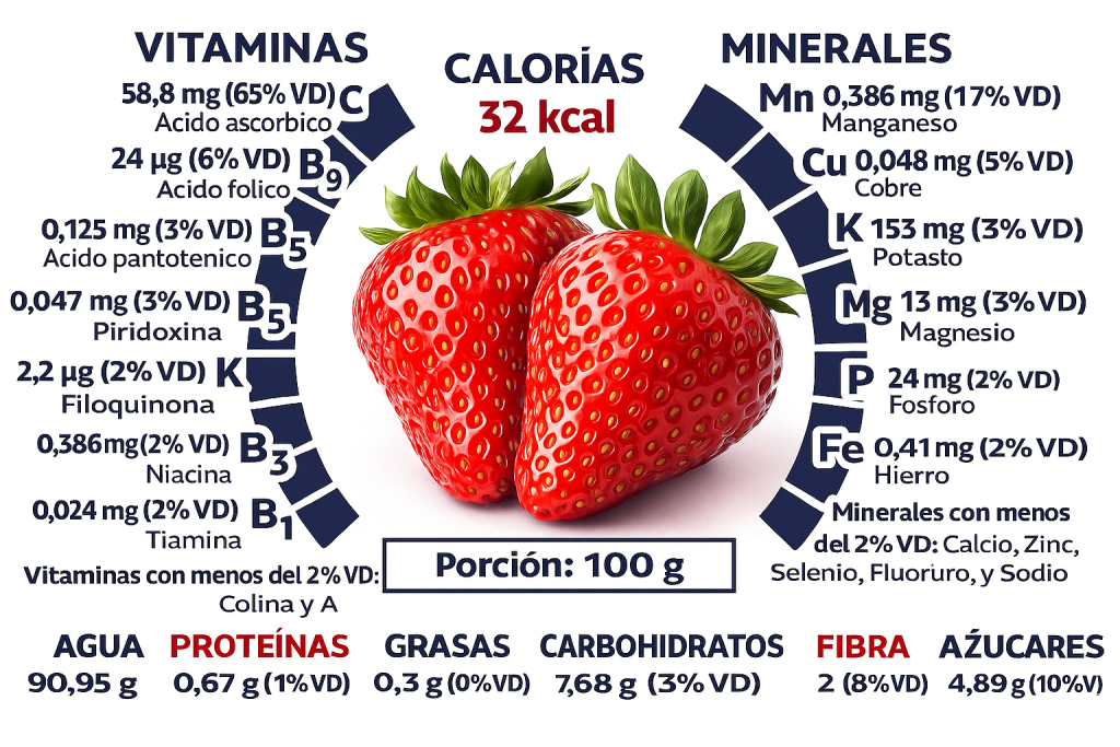 En cuanto a su aporte nutricional, las frutillas son una fruta altamente beneficiosa: